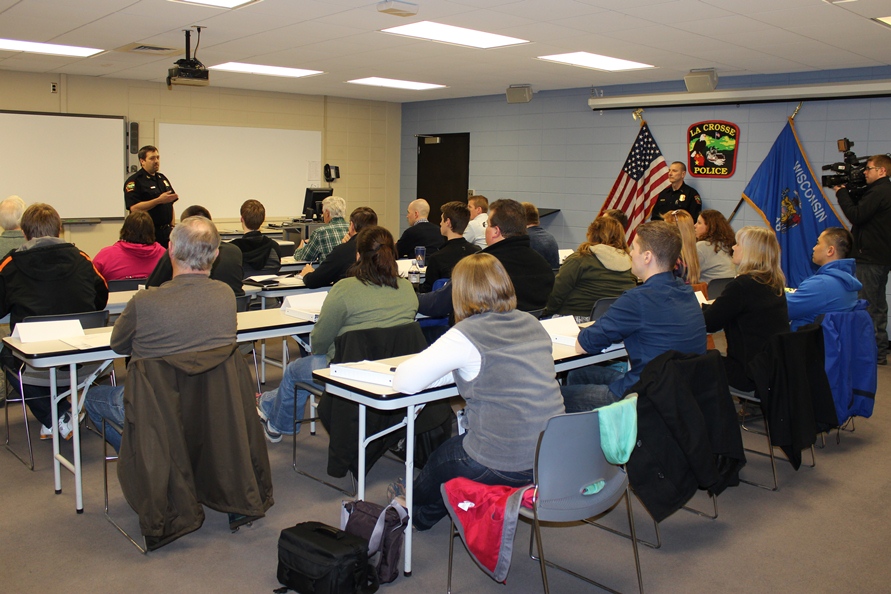 The first Citizens’ Police Academy since 2008 kicked-off Wednesday evening, March 19th. The 22 participants received an overview of the 8-week course, a department tour, and short presentations from the department bureaus – Field Services, Investigative Services, and Professional Standards/Community Services. The participants also learned that alongside presentations and demonstrations by LCPD members, they will have the opportunity for several hands-on experiences including: