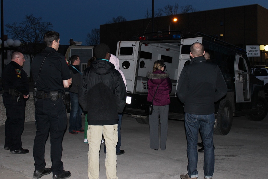 Sgt. Gyllander showing participants the inside of the BEARCAT tactical vehicle.