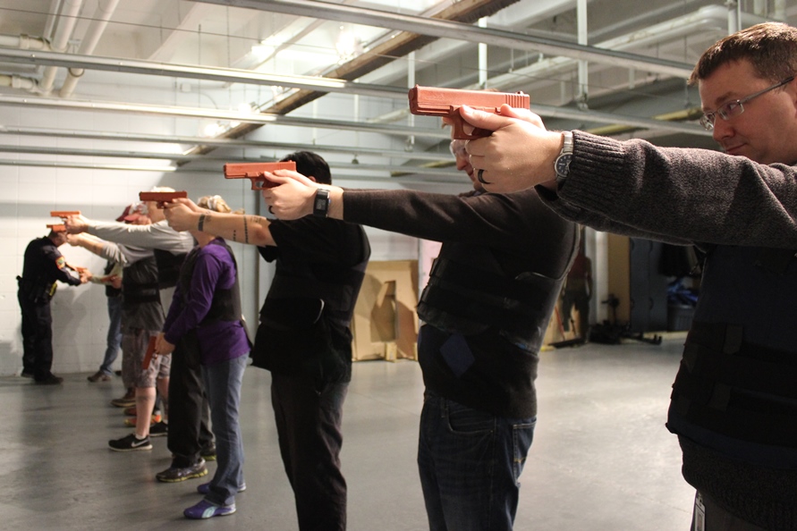 Class participants learning proper shooting stance.