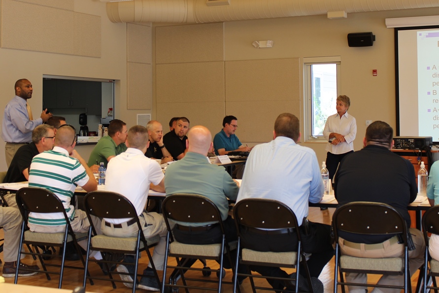 Trainers Ret. Chief Noble Wray (standing, left) and Inspector Mary Hoerig (standing, right).