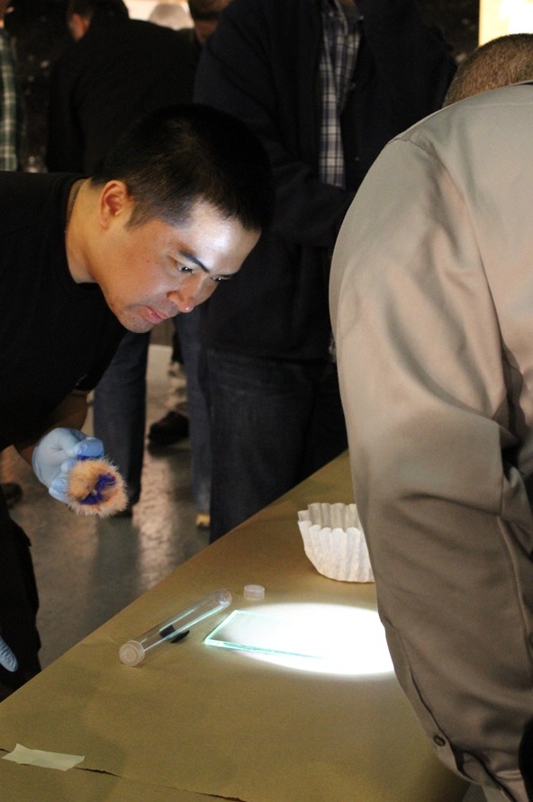 Michael Vo checking fingerprints.